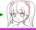アタリから描く事に慣れてきたら、目の描線や髪の線などを、きれいに描く事を意識すると、キャラクターが可愛く見えてくると思います。