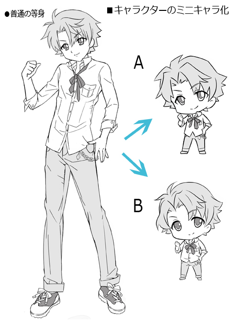 普通の等身のキャラクターを、小さくデフォルメしたものがミニキャラですよね。(小さくデフォルメするコツについてはコチラをご覧ください)