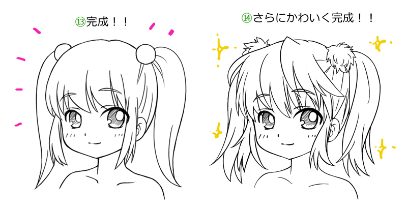 さらに、もっとかわいく完成させるには、髪の毛を細かく描いたり、ヘアーアクセサリーを工夫したりするといいと思います。