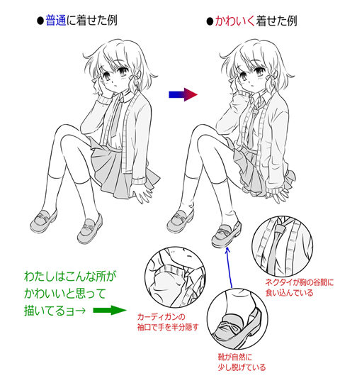 とりあえず基本は、平凡な服をかわいく描ける(キャラに自然に着せられる)かどうか……ここが鍵!