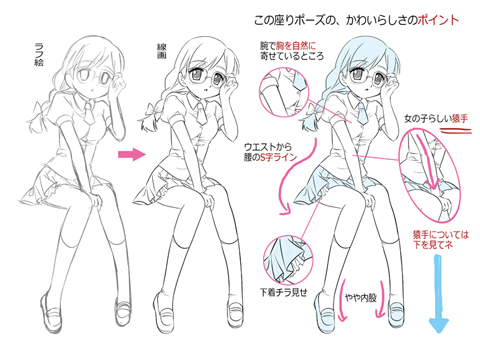 座りポーズを例にかわいく描くコツを説明☆