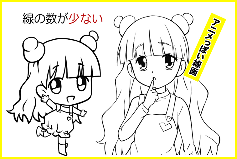 ここではアニメ風とマンガ風という言い方で「2パターンの線画」を説明します。
