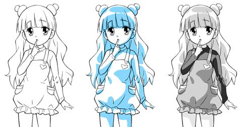 下の例はアニメっぽい影の例ですね。(よくある影のつけ方5パターン!)