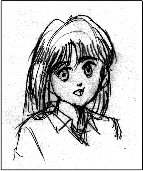 続いて同じ絵を、今度は髪の毛や服のしわなど描線をたくさん描き込んだマンガっぽい線画です。