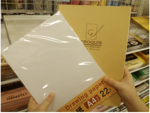 絵を描く紙は色々な種類があります。100円ショップには厚みのある画用紙やクロッキー紙などの薄い紙も売っています。どれも描きやすい紙ですね。ちょっと遊びで描くならA4サイズのコピー用紙がおすすめです。