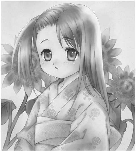 皆さんが描いてみたいと思うキャラクターは、多くは彩色されているカラーイラストだと思います。実は初心者の方はこの色合いに惑わされて、輪郭線を描く時に形をとらえにくくなっていることがあります。ちょっとしたことですが、カラーをモノクロに変換してみると、輪郭線がわかりやすくなります。スマホの場合は「画面をモノクロにする」で検索するとやり方がででたりします」