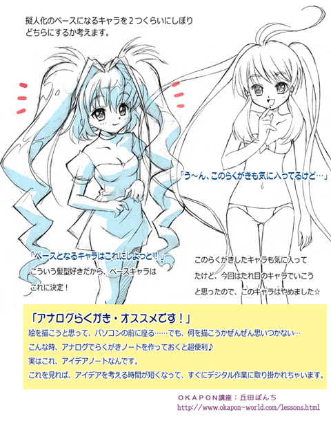 今回は擬人化がテーマなので、ベースとなるキャラの選び方は「擬人化しやすいか、かわいく描けそうか」など。