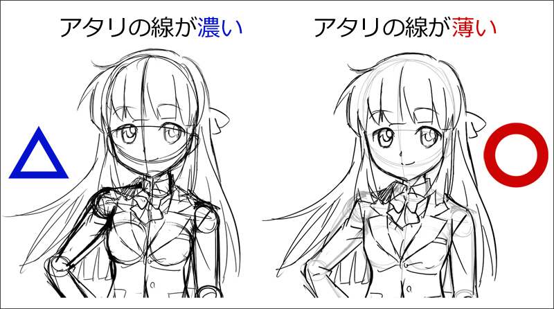 ●アタリ線を薄く描く大切さ