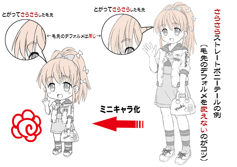 @さらさらストレート、これはよくある毛の描き方。ミニキャラにする時も、さらさら感を出そう