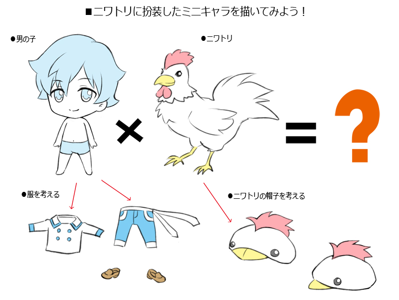 鳥の仮装をしたミニキャラを考えるといっても、左のような仮装になってはいませんか?