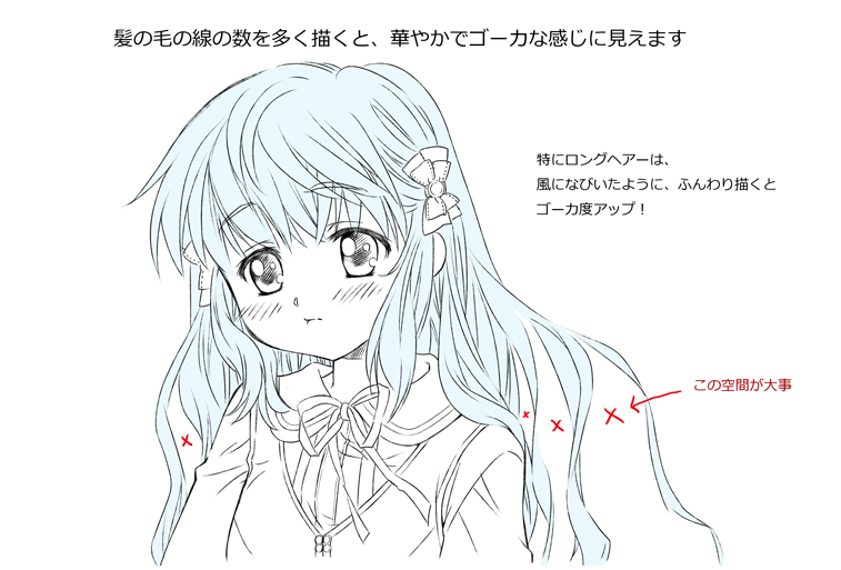 キャラクターを描くとき、目と同じくらい気になるのが髪の毛。今回は初心者の方向けに添削形式で髪の毛を描くポイントをお話しします。