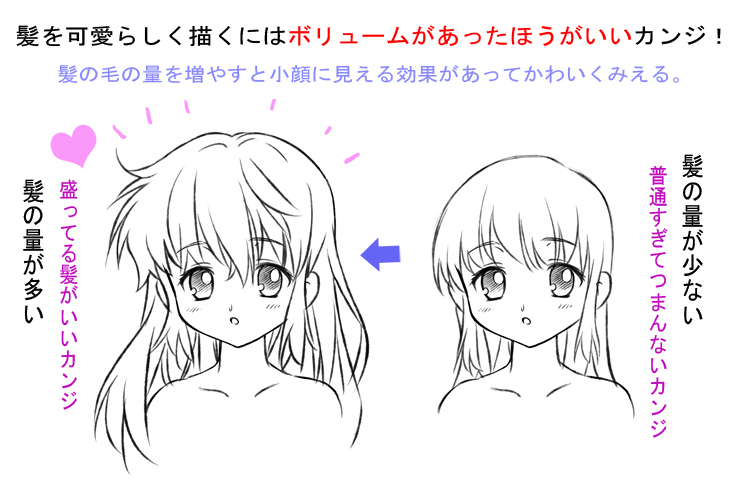 キャラクターを描くとき、目と同じくらい気になるのが髪の毛。今回は髪の毛をかわいらしくみせるポイントです。