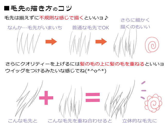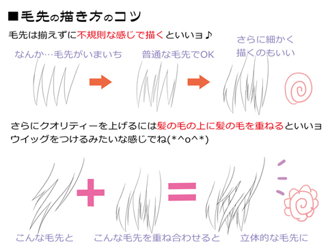 「毛先はどんな風に細かく描くの?」という方のために、ちょっとしたコツを説明☆