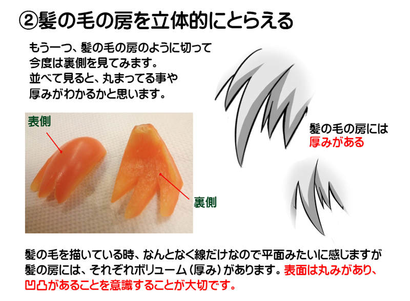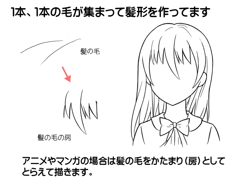 写真などから実際の人物をリアルに描写した絵と異なり、マンガなどのキャラクターの髪の毛はデフォルメされています。
