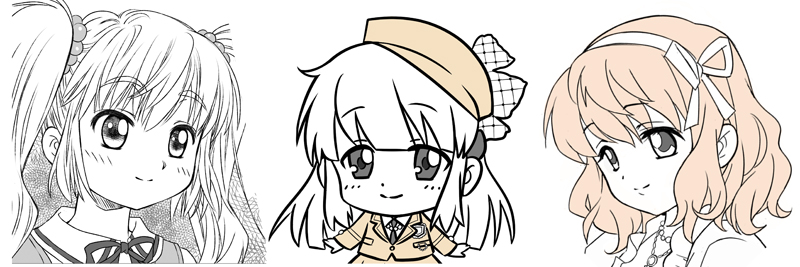 Aはマンガキャラなどの線(描線)が多い表現