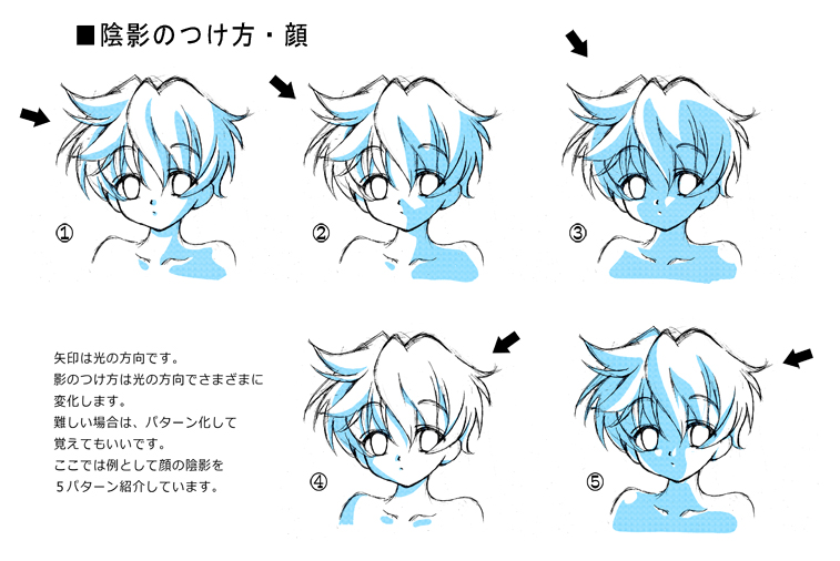 キャラクターイラストではジャンルによって色々な影の書き方をしたり、マンガではトーンを使って陰影を表現したりしますが、まずは最初に顔の影のつけ方(影の考え方)から見ていきましょう!