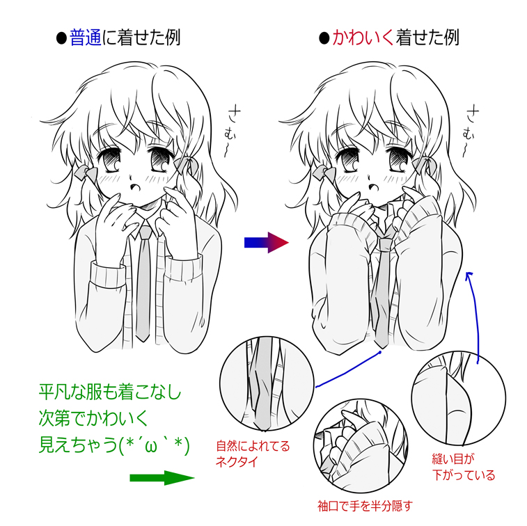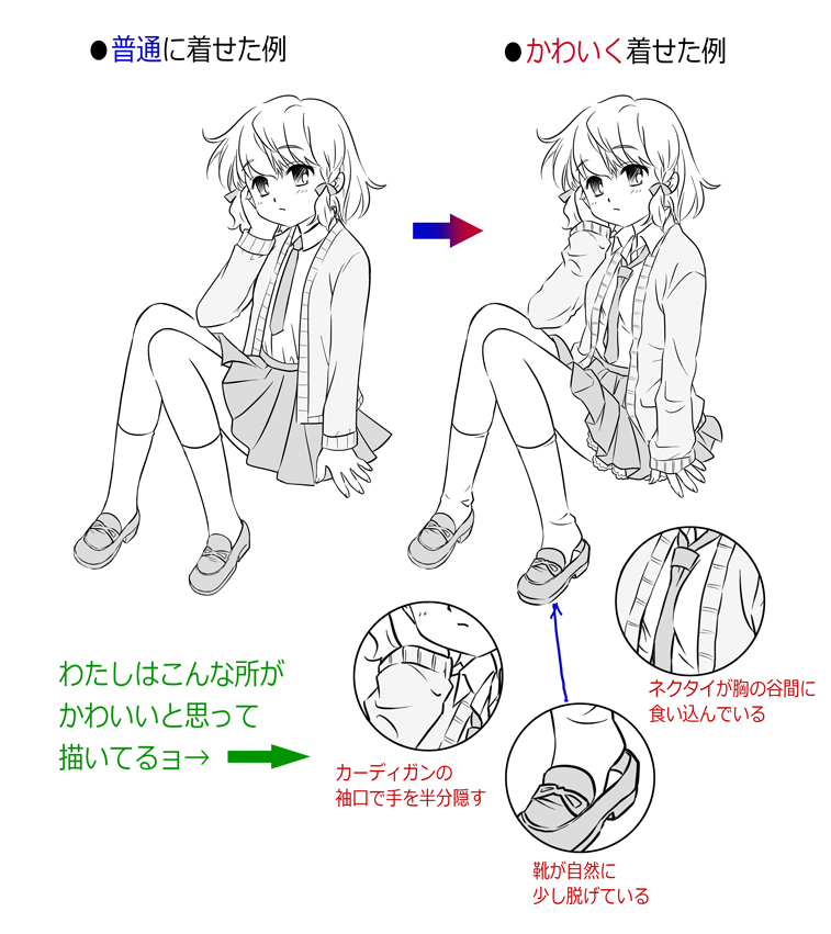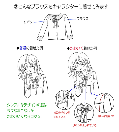 服をかわいく描くには、着こなしを考えるのが大切☆