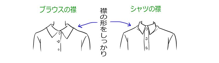 ・ちょっとここでシャツとブラウスの襟の描き方の確認をします__φ(..)