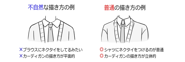シャツなのかブラウスなのか、襟をちゃんと意識して描くといいかも…☆