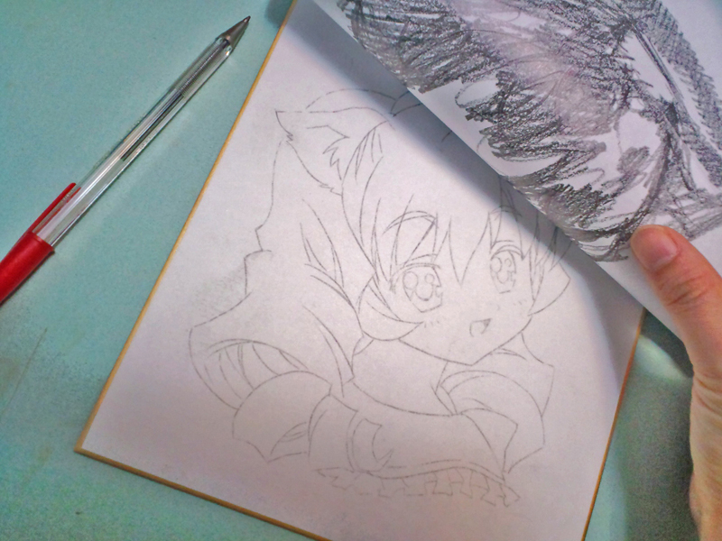 もちろん色紙の紙はボロボロになってない!一発描きしたみたいなきれいな下描きですな