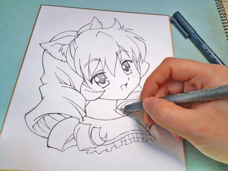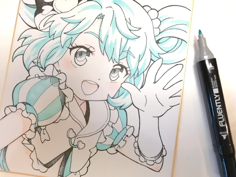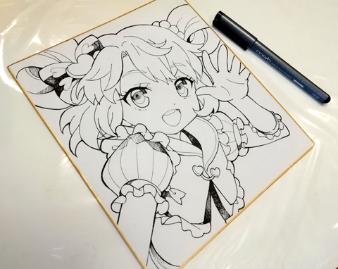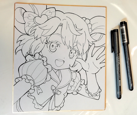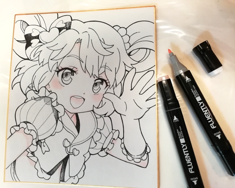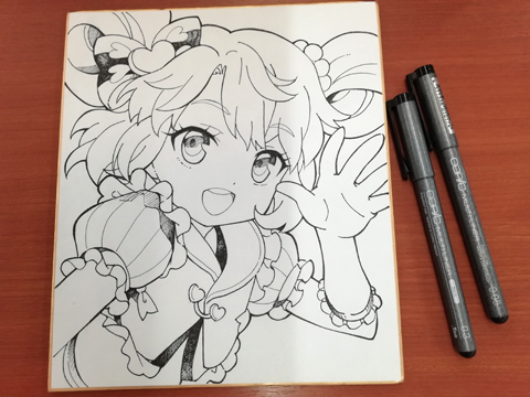 今回は「色紙にコピックでキャラを描く」というテーマで、失敗しにくい下書き、ペン入れ、目や肌、髪の色塗りと、簡単にきれいに見える描き方をやりたいと思います。