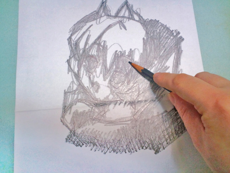 次に下描きした紙を裏返して、2Bか、3Bくらいの鉛筆で裏を塗りつぶしていきます。