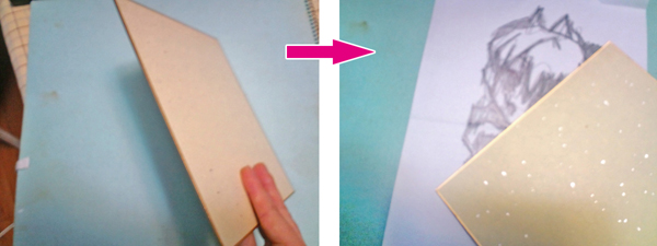 さっき作った下描きの紙(鉛筆カーボン)と重ね合わせます。