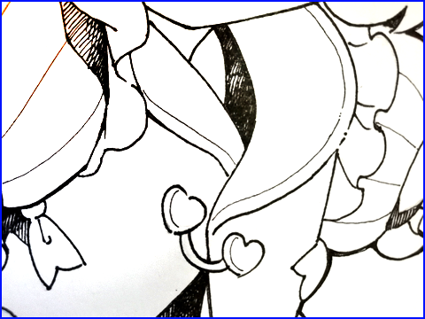 リボンも斜め線を重ねて黒っぽくしています。こうすることで真っ黒にべタで塗りつぶすよりも立体的に見えます。